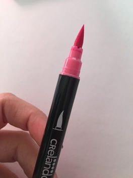 6. Ecoline: a pesar de tener una punta fina se desliza muy bien y permite hacer con facilidad los trazos finos. El inconveniente que tiene es que suelta demasiada tinta si aprietas al hacer el trazo grueso y eso acaba traspasando el papel, pero por un lado esto mismo es una ventaja a la hora de ver el efecto degradado en el color. Su precio ronda entre 1.70€-3€ según el sitio. También tiene una gran variedad de colores súper bonitos.